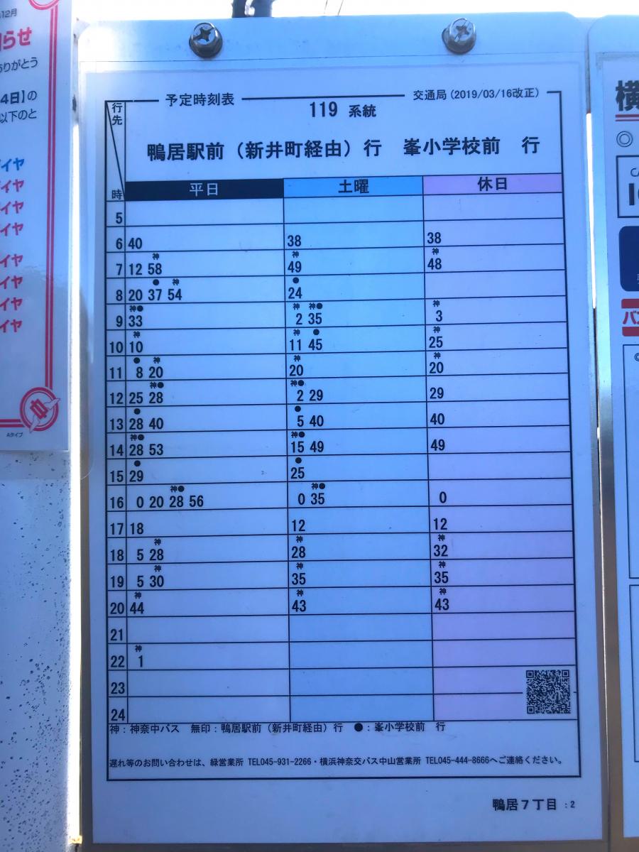鴨居駅前 時刻表 のりば地図・他系統の時刻表を見る ※時刻表は以下の系統・行先の時刻を合わせて表示しています ※時刻のお問い合わせは こちら へ 12 白山高校ゆき スマートフォン・携帯電話から時刻表を確認できます ※ご利用環境によっては 鴨居駅JR横浜線 普通 東神奈川行き 0503発 次の乗り換えが便利になる乗車位置をご案内します。 ※進行方向の先頭車両から 両目を表しています(号車番号ではありません)。119 (新井町経由)鴨居駅前ゆき 172 (西谷駅前経由)鴨居駅前ゆき スマートフォン・携帯電話から時刻表を確認できます ※ご利用環境によっては、正しく2次元バーコードを読み取れない場合があります。 乗車日21年07月06日 時 平日